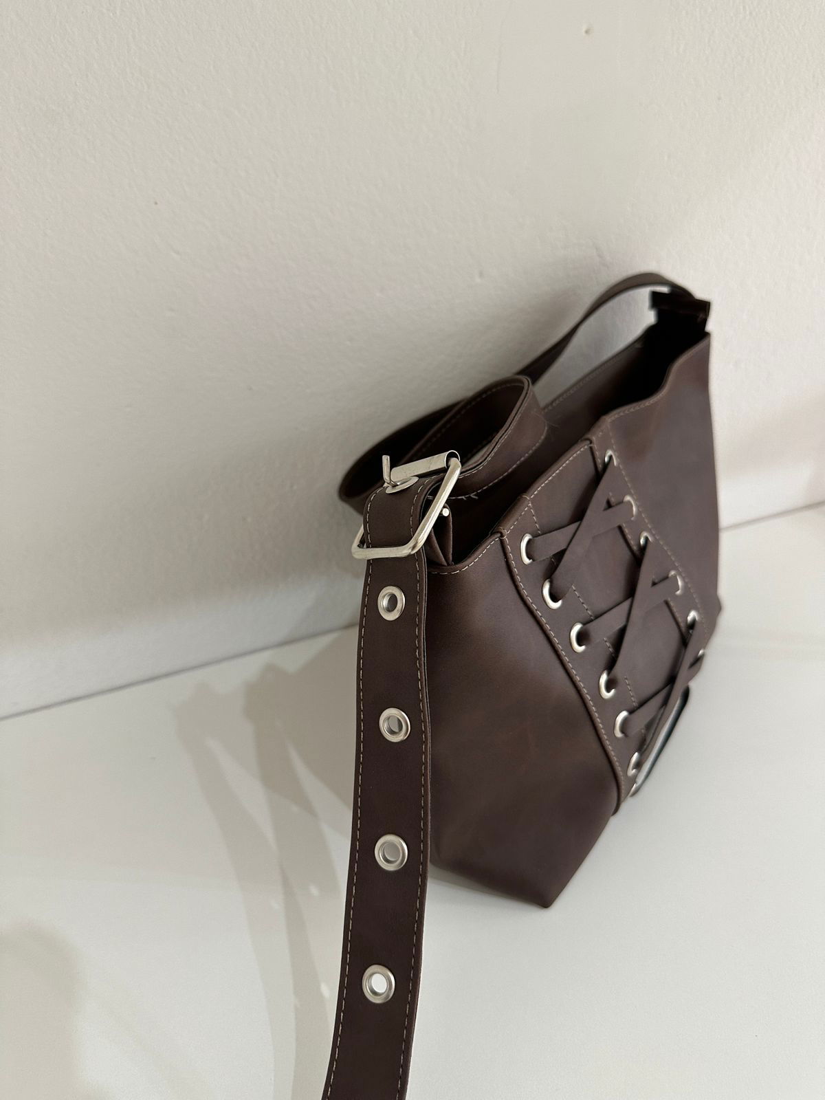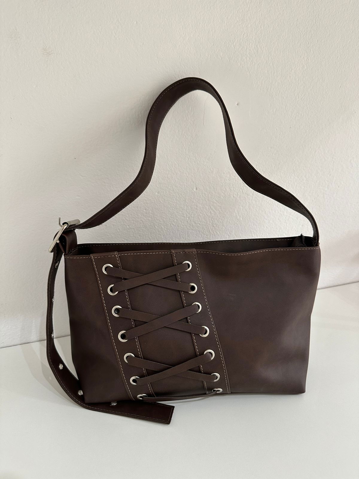 Material: EcocueroCorrea: RegulableMedidas: 26x22x8cmCierre: cierreBase rígidaForrada en su interior con bolsillo